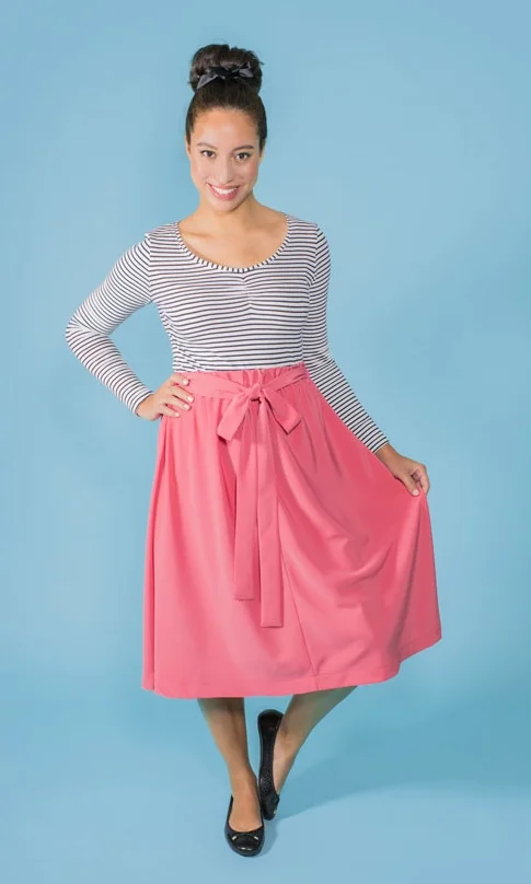 This quick and easy skirt will have you sewing up a new wardrobe in all your favorite fabrics. It's easy to sew, easy to fit, and works in such a wide range of fabrics that we know it will become your next handmade wardrobe staple.