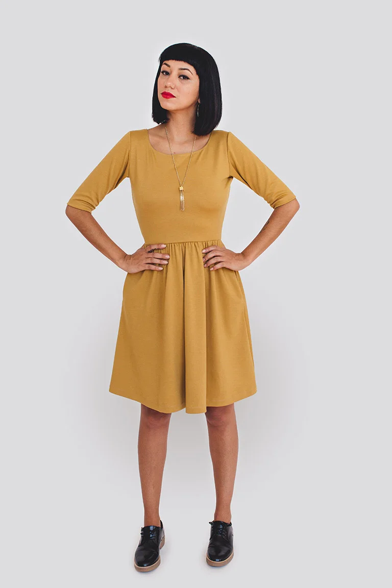 Up your sewing game, broaden your options, and make yourself a comfortable, well fitting knitwear dress in a fabric and style that suits you.